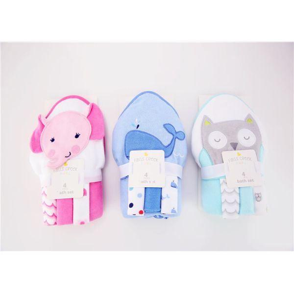 Knit Terry Hooded Towel 3 Washcltoh Baby Swaddle Blankets Excellent Expansibility